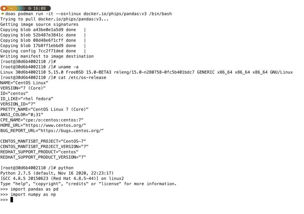 doas podman run -it --os=linux docker.io/phips/pandas:v3 /bin/bash