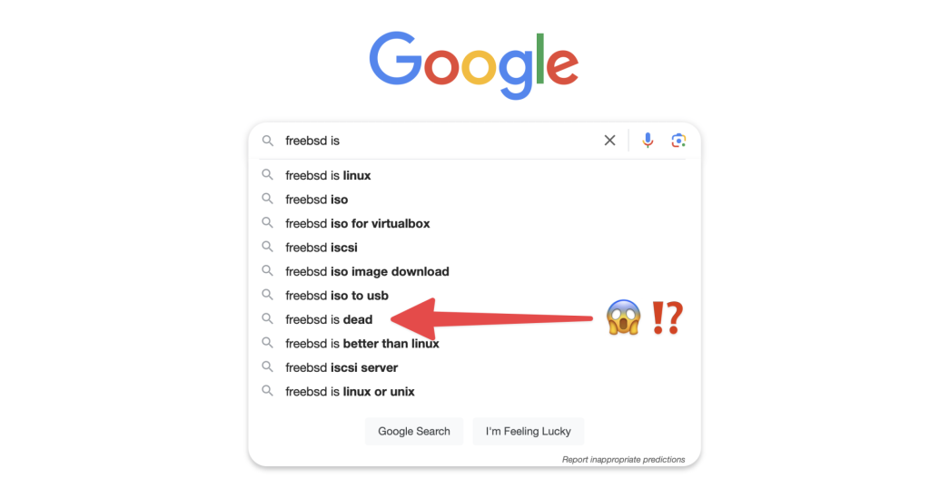 我来到基金会已经大约三个月了。在这段时间里,我和一些正在使用 FreeBSD 的企业、以及一些有意愿使用 FreeBSD 的企业进行过几次交谈。在不止一次的场合中,有个说法让我不禁挑眉——因为这既不是我所见,也不是我所感受到的。那句话是:“FreeBSD 不是快死了吗?”