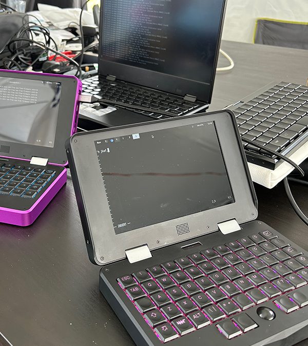 在筹备婚礼这繁忙的夏天之后,CCCamp 成为我稍微放松的机会。我尽力避免组织活动,但计划赶不上变化。通过 Fediverse 的一位朋友帮助我主持了来自 MNT Reform 项目(https://mntre.com)/)的 Lukas 的展示活动,展示了他所构建的开源 Arm64 笔记本电脑。这对许多人来说是第一次尝试这款笔记本,并预览了即将推出的 7 英寸口袋款(如果你的口袋够大的话)笔记本电脑。首批设备预计将于 2024 年初发货,但原型硬件非常出色,可以用来调试各种问题。