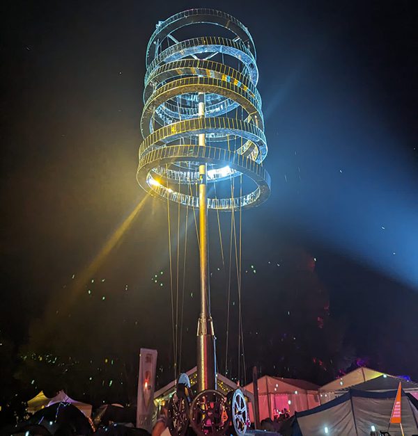 到了晚上,整个场地真正变得生动起来。村庄将黑暗视为一种个人侮辱,并在活动的几十年里不断增加 LED、聚光灯和激光的武器库。太阳落山时,活动现场充满了灯光秀,各个村落通过独特的音乐表演、音箱阵列和 DJ 演出增添了会议的热闹氛围。