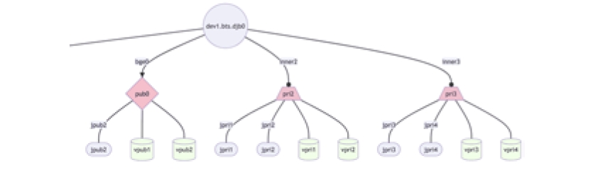 虽然这个输出已经很不错,ngbuddy 还包含一个我编写的辅助脚本 ngbuddy-mmd.awk,可以将上述输出转换为更美观、更清晰的 mermaid-js 可视化图形。我们公司的文档系统支持 mermaid-js,因此借助一些 API 魔法,我总能在文档数据库中保持所有主机 Netgraph 拓扑图的实时更新。